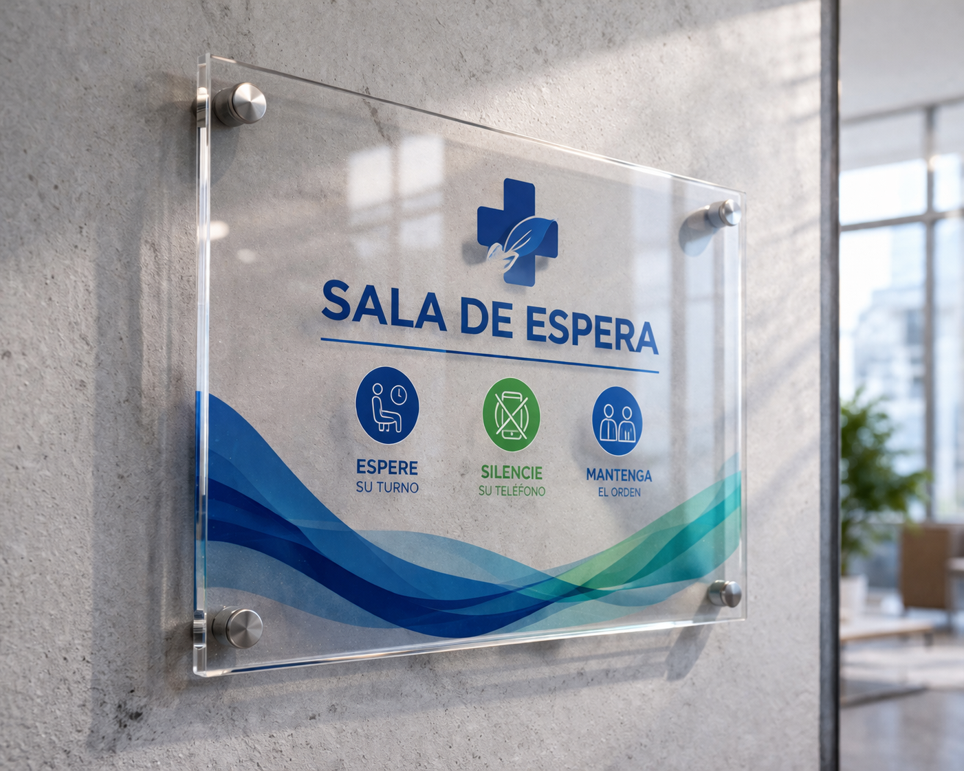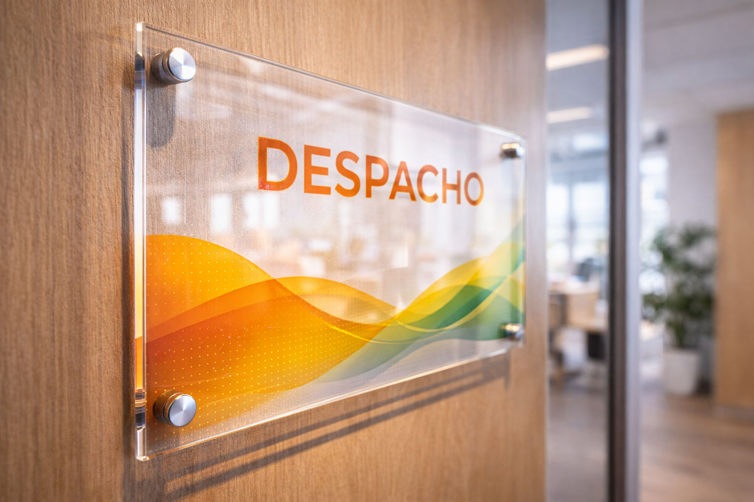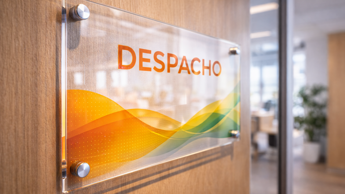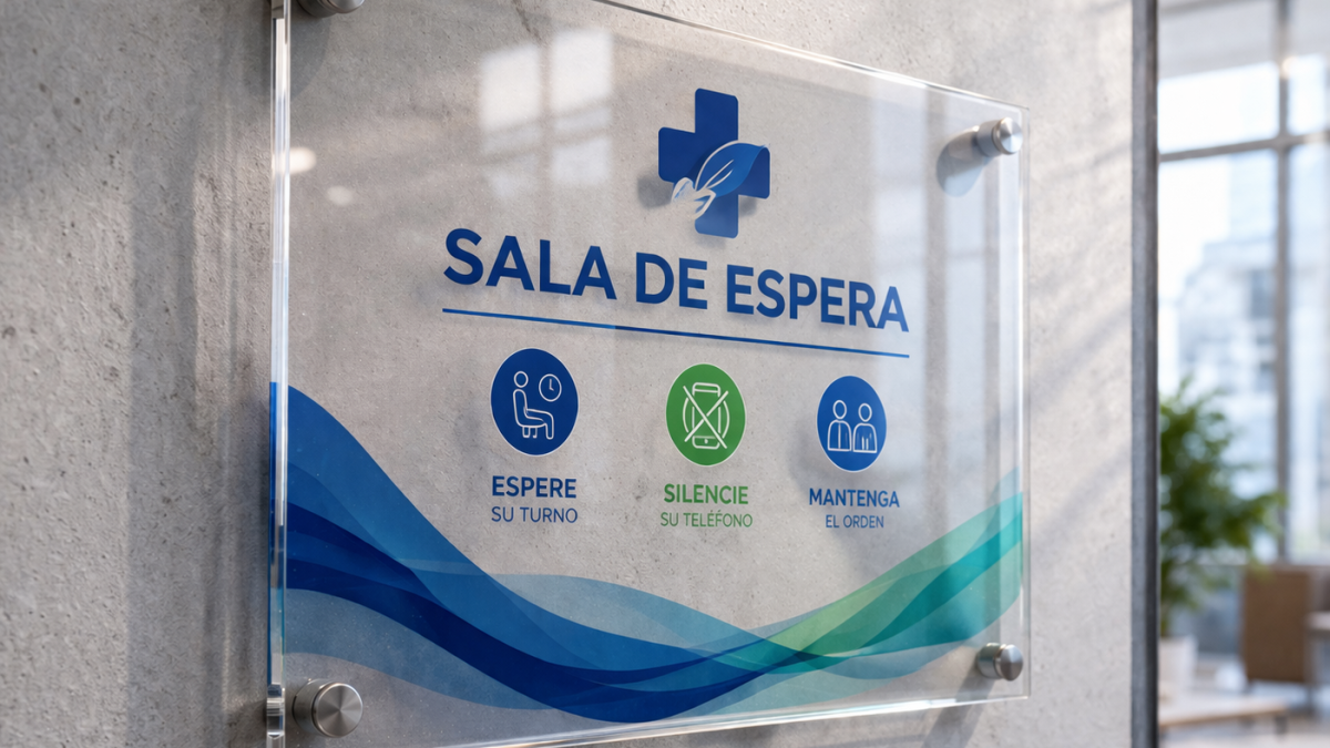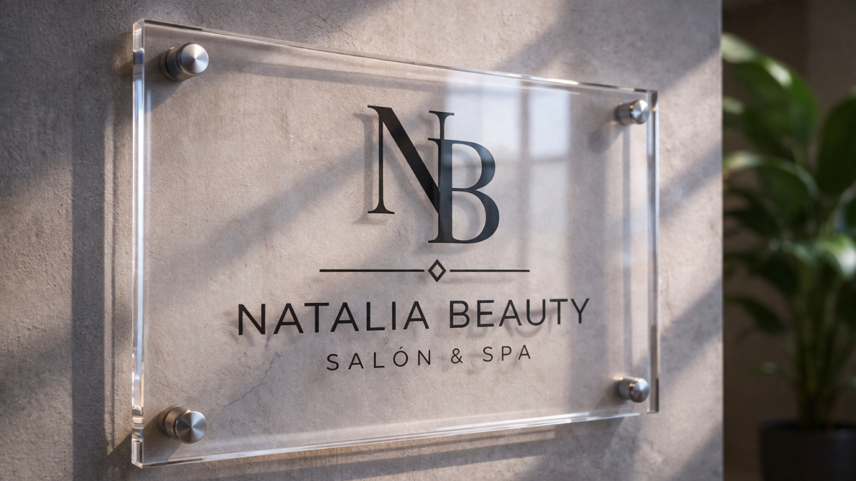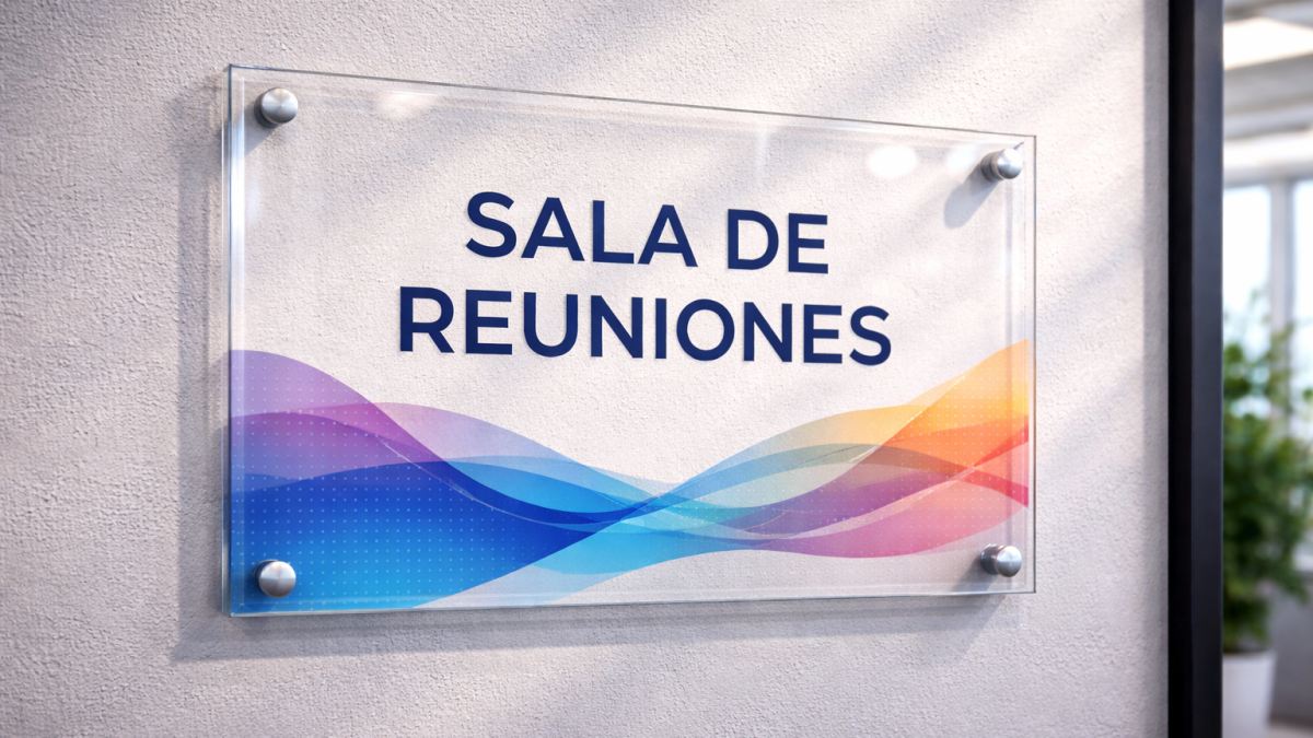 Adhesivo impreso emplacado en acrílico 2mm, solución liviana y elegante para señalética y branding con acabado limpio y moderno.